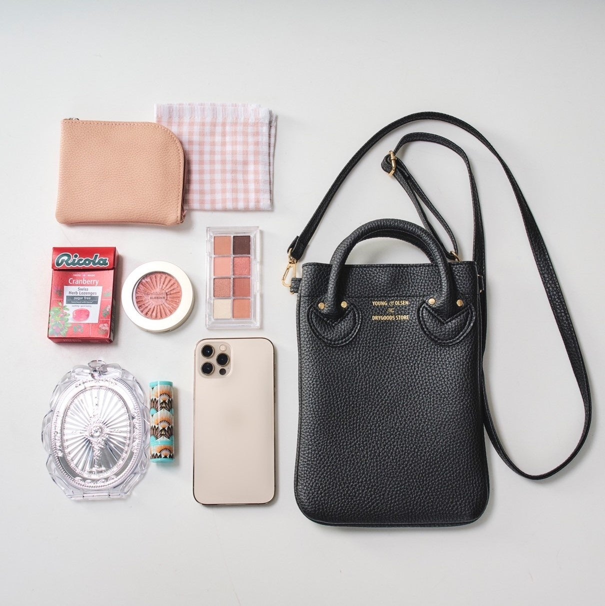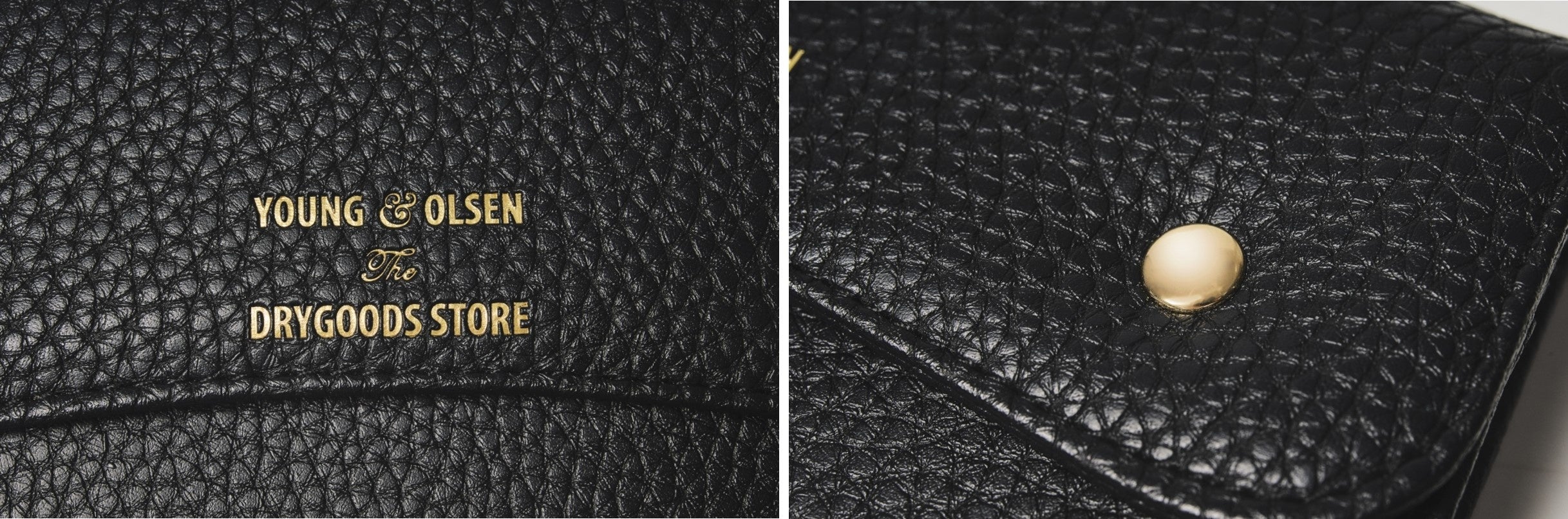 特別アイテムは、ブランド初となる「お財布」と昨年好評だった「スマホショルダー」。お財布は、レザー調のブラックの長財布で、2個のお札入れと8個のカードポケットが付いています。コインポーチは取り外して単体でも使える優れもので、ユニセックスなデザインにこだわりました。ヤングアンドオルセンが完全監修、本誌限定の激レアアイテムです。