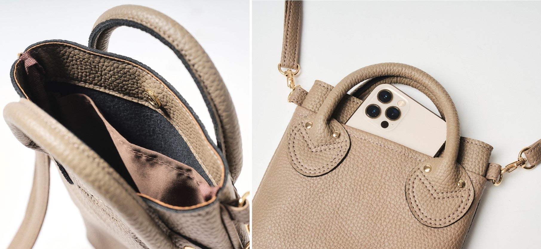 スマホショルダーは、昨年発売し累計8万部を突破した大ヒットアイテム。ブランド定番のトートをモチーフにした、ブランドらしいデザインがポイントです。今回は、待望の新色トープが登場。どんな服装にも合う、使いやすいカラーです。また、好評につき、ブラックの重版も決定しました。