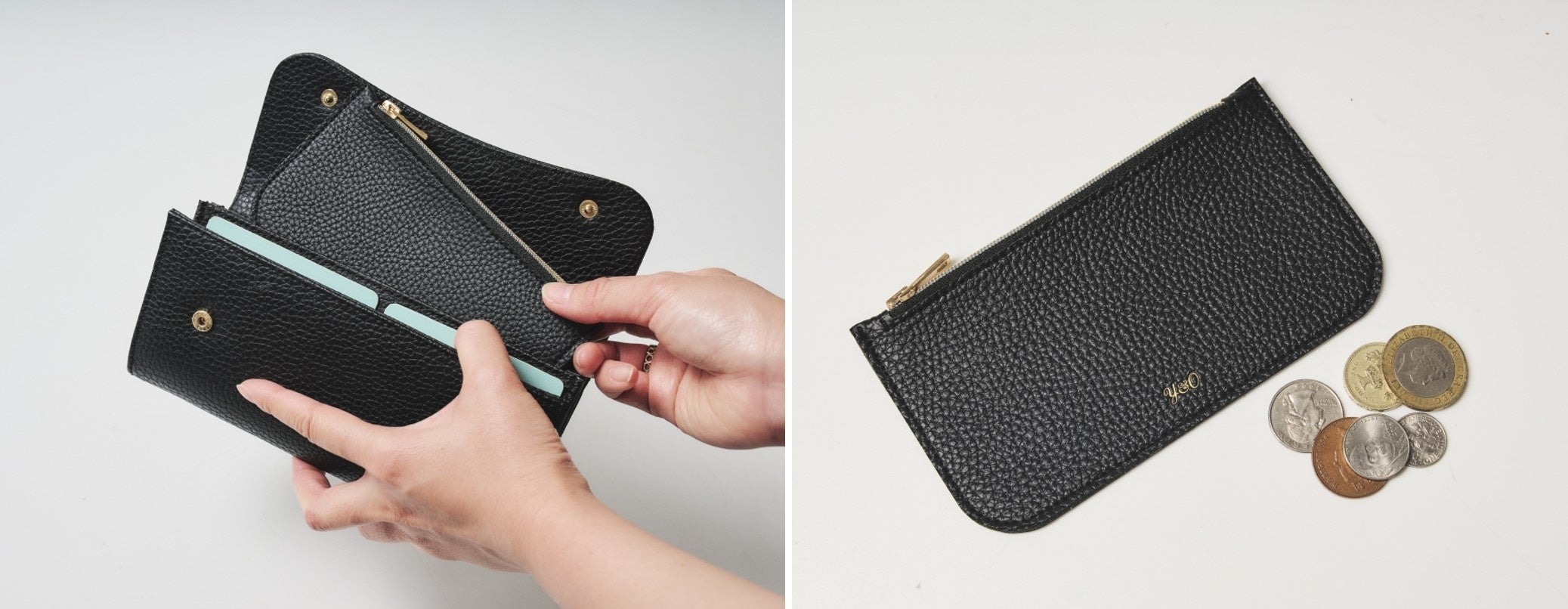 スマホショルダーの背面ポケットは、上記の「お財布」がピッタリ収まる設計になっているので、あわせ使いもおすすめです。