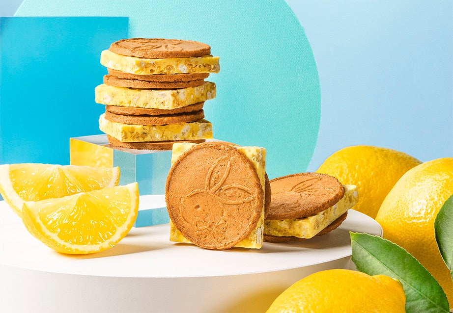 『鎌倉半月』でおなじみのゴーフレットで、夏限定レモネード味の厚切りクランチショコラを大胆にはさんだショコラサンド。しゃりっと食べた瞬間、蜂蜜の香りがふわっと広がり、レモネードの爽やかな甘みと酸味に包まれます。クランチショコラには、なんと5種ものクランチ素材をミックス!特別な“しゃりしゃり食感”に仕上げた爽やかサンドです。