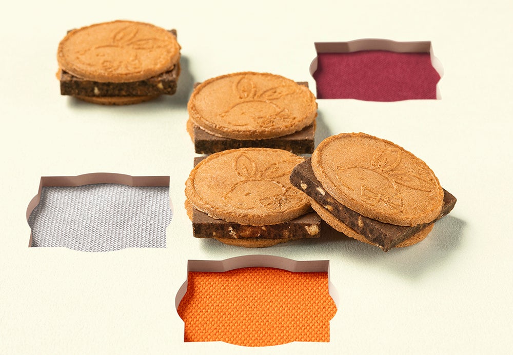 『鎌倉半月』でおなじみのゴーフレットで、厚切りのクランチショコラをはさんだ『鎌倉チョコサンドだょ』。ゴーフレットは、アーモンドを焼きこんだ香ばしいキャラメルナッツ味。クランチショコラには、ココアビスケットを砕いた「ブラッククランチ」、アーモンドビスケットを砕いた「アーモンドクランチ」、粗挽き煎り大豆を使用した「大豆クラッシュ」の3種クランチ素材をミックスしました。