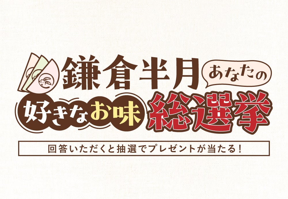 『鎌倉半月』は、定番の「小倉風味」「抹茶風味」に加え、季節ごとに多彩な味わいが登場するのも魅力。そこでこの度、鎌倉半月\あなたの/好きなお味総選挙を開催いたします!あなたの推しフレーバーをぜひ教えてください。