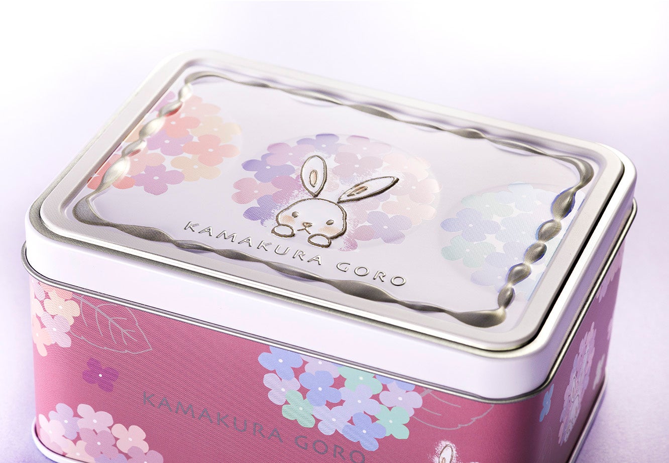 ①鎌倉の色とりどりのあじさいが彩る『うさぎ缶<彩あじさい>』新発売