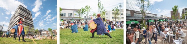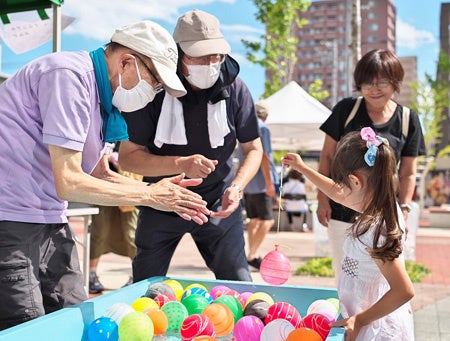 「ピクニックマルシェ」は『イニシアグラン札幌イースト』の周辺の店舗による物販や札幌市内に店舗を構える飲食店のキッチンカーを招き飲食を楽しみながら札幌の夏の風物詩「YOSAKOIソーラン」などを楽しんでいただく地域連携イベントです。今年は『イニシアグラン札幌イースト』の居住者による縁日ブースや手作り製品販売ブースも出店し、再開発で誕生した新しいマンションと既存地域との人の交流だけでなく、当該マンションに住まうアクティブシニアの方々と、地域の子どもや子育て世代との、世代を超えた交流の機会創出を行いました。