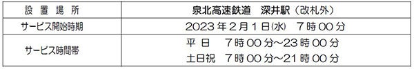 今回の深井駅への設置により、泉北高速鉄道では4駅(和泉中央駅、光明池駅、泉ヶ丘駅、深井駅)での展開となり、ますます便利にご利用いただけます。
