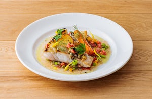 和歌山県すさみ町産の新鮮でクセのない「オキザワラ」をしっとりと焼き上げ、ミントの香る爽やかなラヴィゴットソースを合わせました。