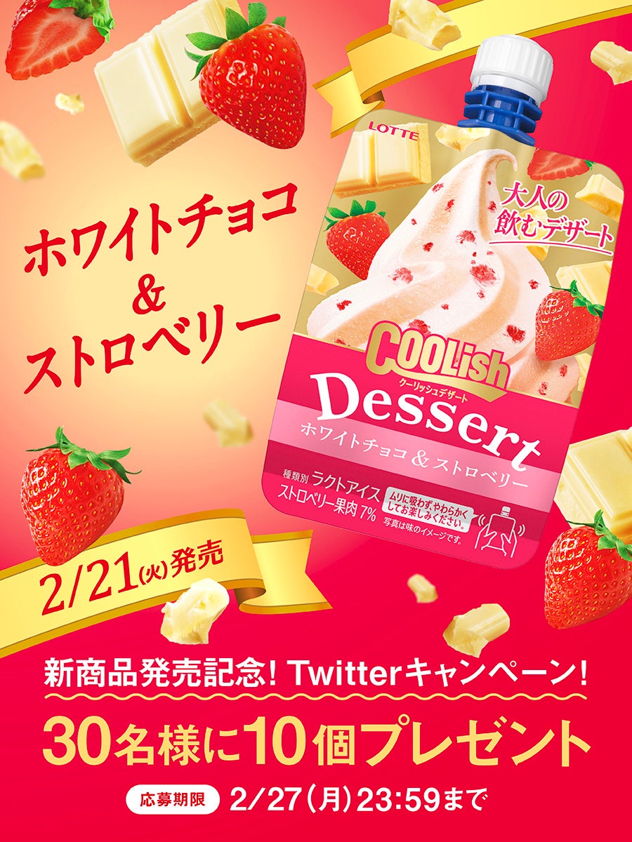 『クーリッシュデザート ホワイトチョコ&ストロベリー』が当たるTwitterキャンペーンを実施いたします。