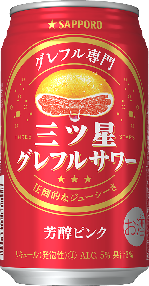 サッポロホールディングス(株)のグループ企業であるサッポロビール(株)は、グレープフルーツ本来のおいしさを徹底的に追求したグレフルサワー専門ブランド「サッポロ 三ツ星グレフルサワー」2商品を5月24日に全国で発売します。