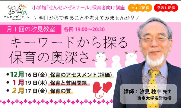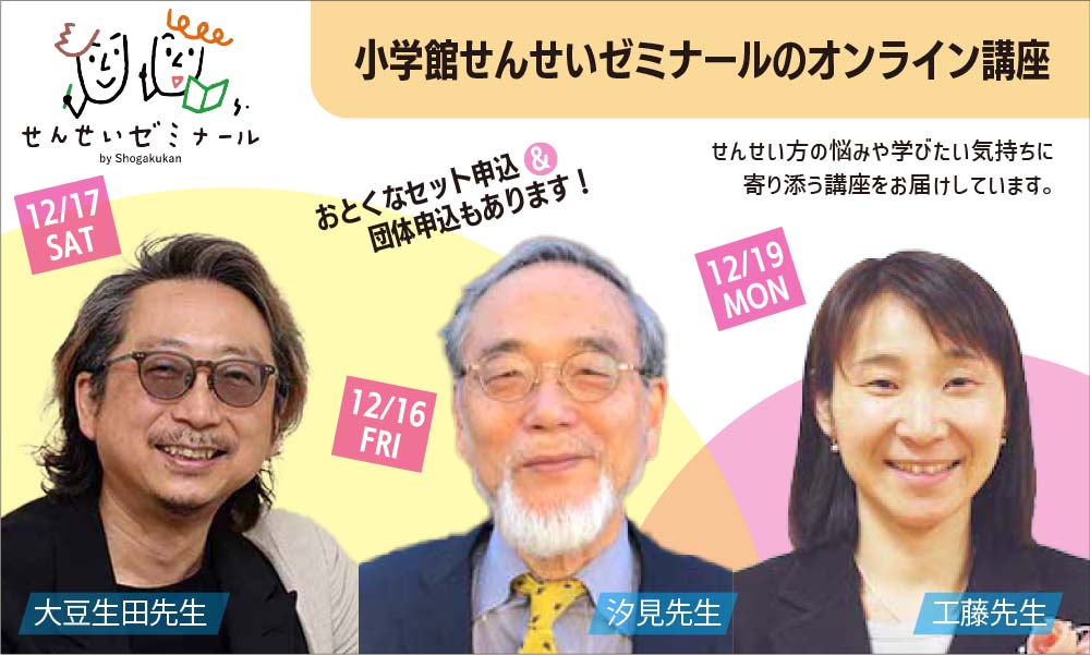 【小学館せんせいゼミナール】汐見先生、大豆生田先生、工藤先生の各講座、お申し込み受付中です! 園単位でのお申し込みも好評受付中!