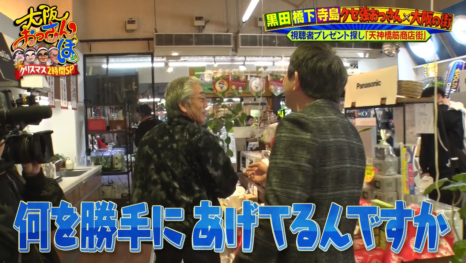 良純と寺島がバトンタッチし、日本屈指の長さを誇る天神橋筋商店街で視聴者プレゼント探しを続行。