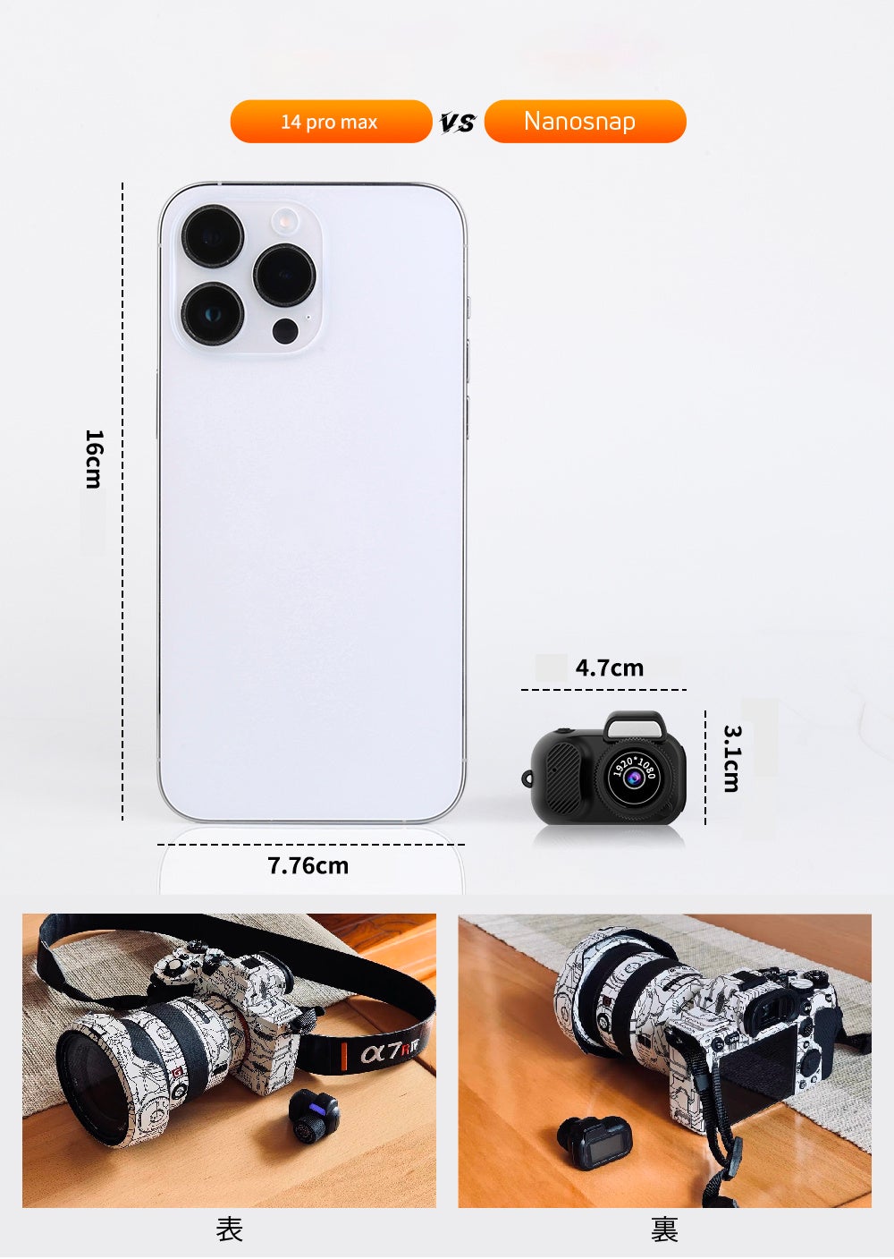 NanoSnap(ナノスナップ)は、親指サイズでわずか19g。驚きの軽さとコンパクトさを極めた1080Pミニカメラです。