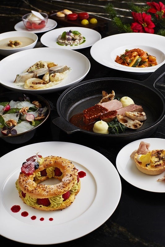 週末のパーティーやご家族の集いに最適な、全10品の料理をランチタイムにシェアリングスタイルで楽しめるウィークエンドフィーストが、12月21日(土)、22日(日)限定でクリスマス仕様の特別な内容に。3種類の前菜に、栗のスープ、海老クリームソースのカサレッチェ、鰆のソテー、鬼の宝ポークヒレ肉のロースト、そして3種類のデザートをお楽しみください。4品のコースもご用意しています。
