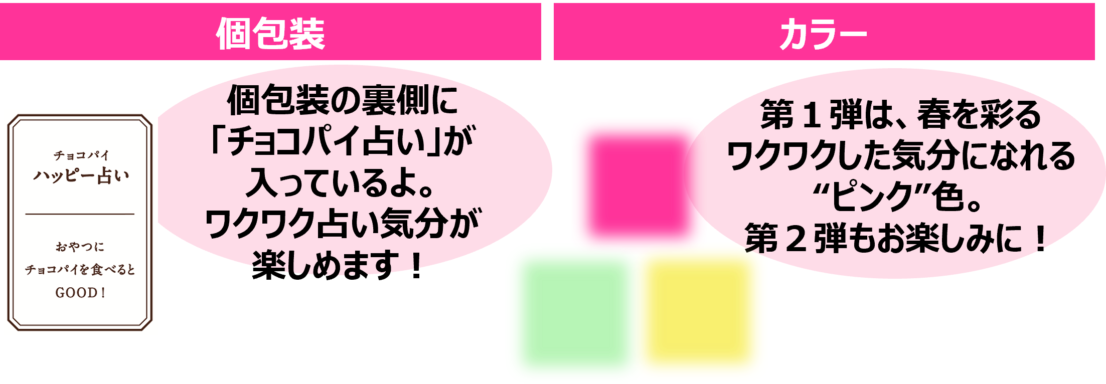 - 元気な気持ちになれる色やケーキをモチーフにした新シリーズ「ハピネスモチーフチョコパイ」の第一弾!