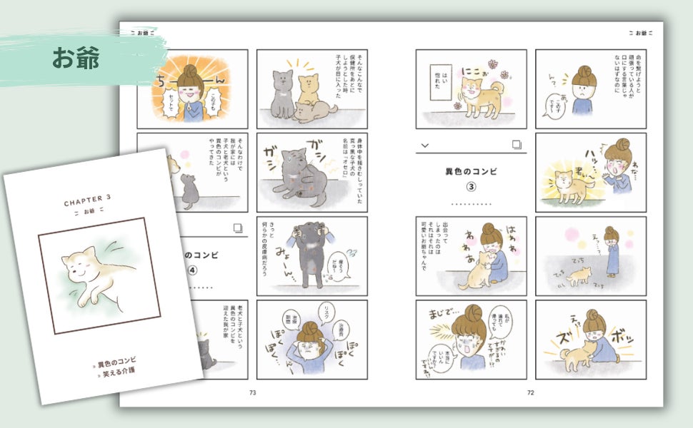 老犬との出会いやコンビとなった子犬との生活、そして別れ……直面する介護や看取り、ペットロスに対する考え方を問います。