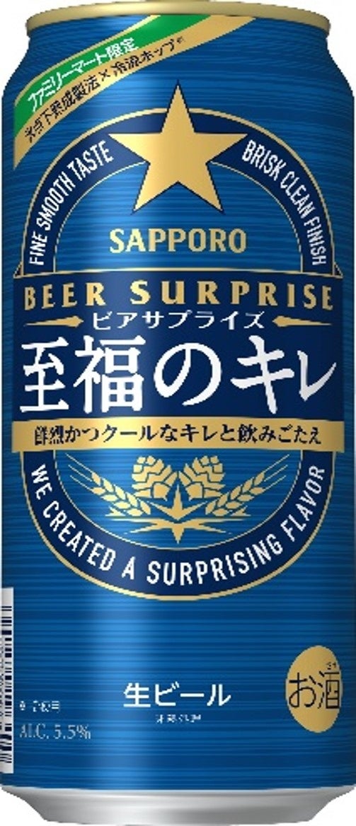サッポロホールディングス株式会社のグループ企業である、サッポロビール株式会社(本社:東京都渋谷区、代表取締役社長:野瀬裕之、以下サッポロビール)と、株式会社ファミリーマート(本社:東京都港区、代表取締役社長:細見研介、以下ファミリーマート)は、「サッポロ ビアサプライズ至福のキレ」を全国のファミリーマート酒類取扱店約16,300店(注1)で5月3日から数量限定で発売します。(注2)