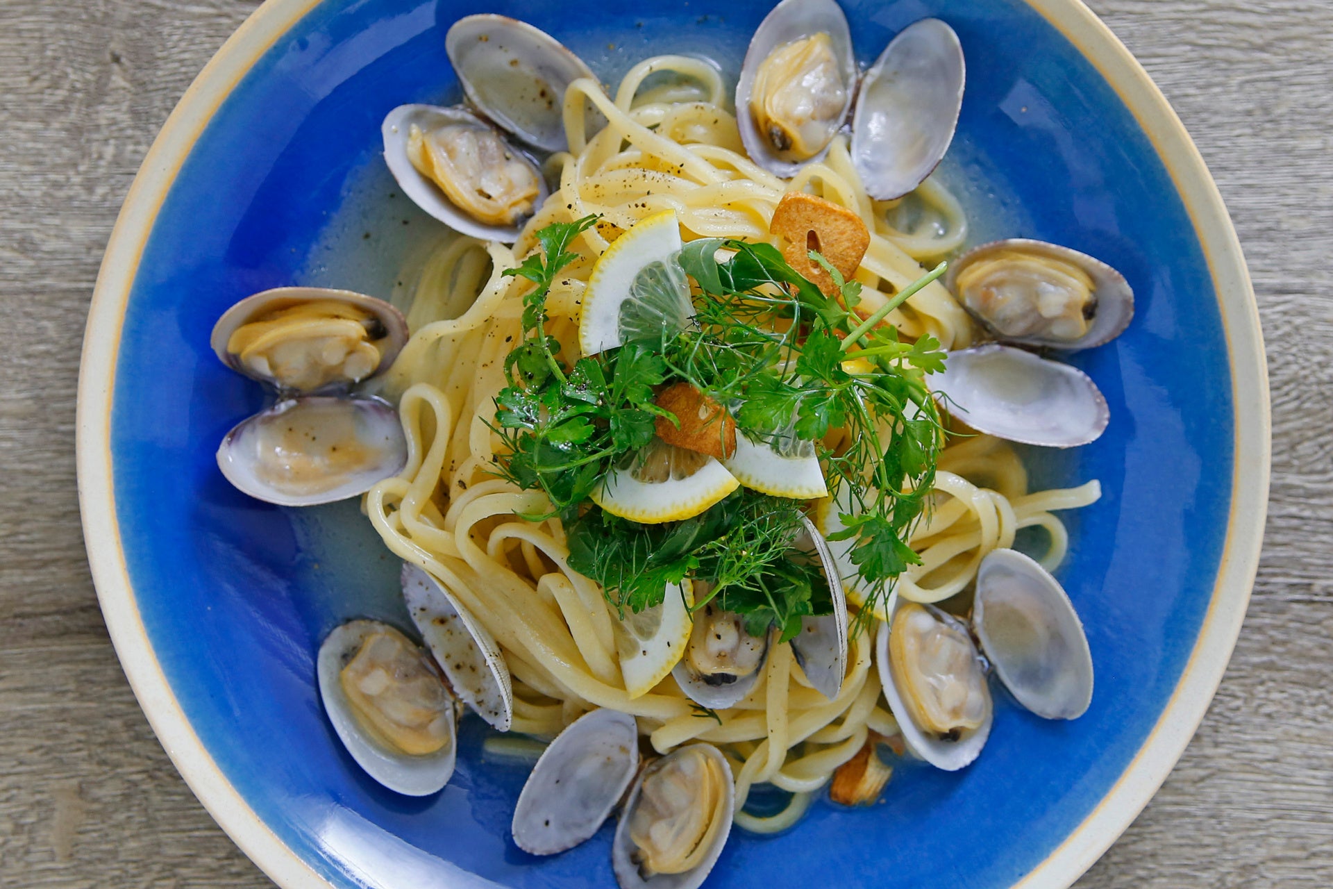 「Eat / Slow Life」をテーマに、店内の製麺機で作るこだわりの生麺と島の旨みを感じるソース、食材で味わう島パスタ。