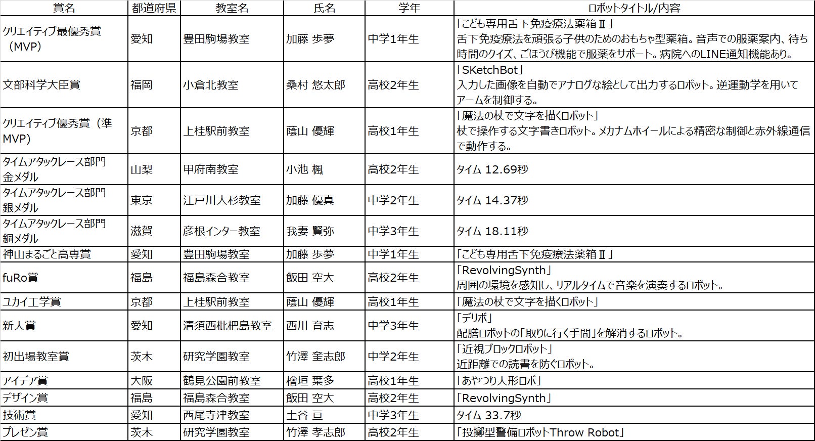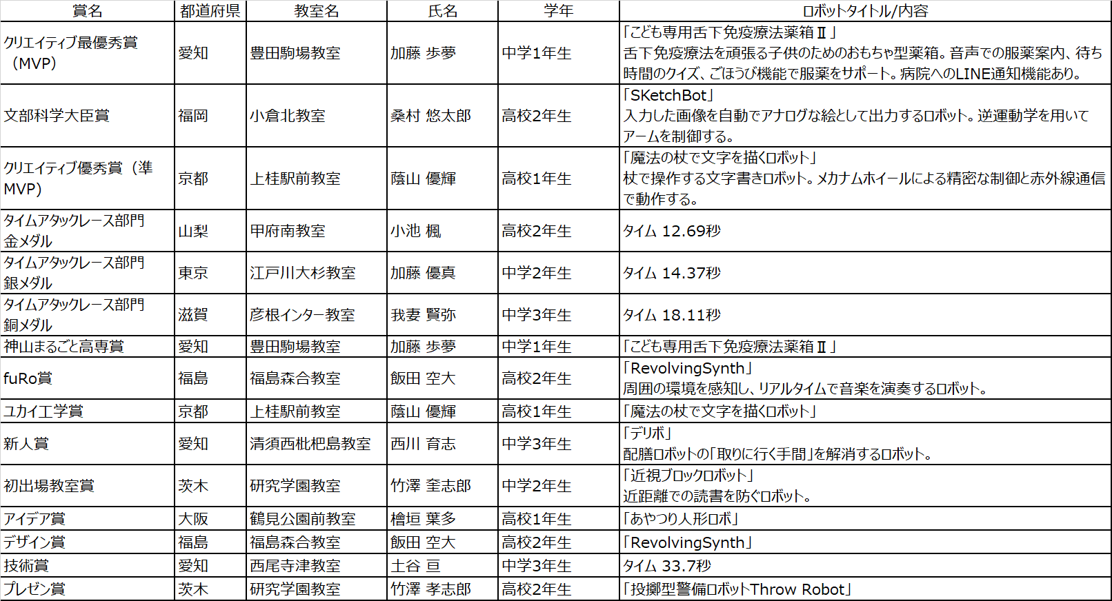 ●クリエイティブ最優秀賞(MVP)は、愛知豊田駒場教室の中学1年生、加藤歩夢さんが舌下免疫療法を楽しみながら実施できるロボットで受賞