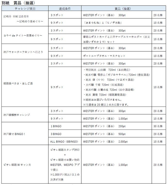 達成条件をクリアした方の中から、抽選でWESTERポイントや賞品をプレゼントします。