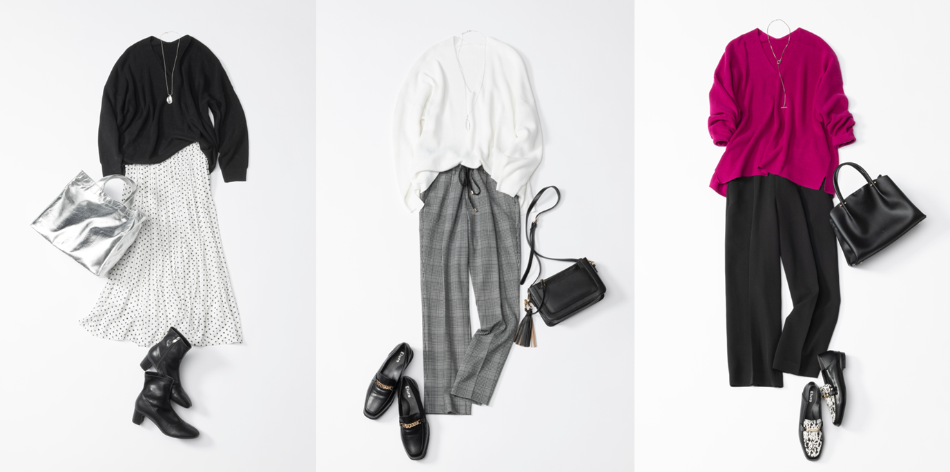 ■3秒で大人の抜け感を演出!1枚で決まる秀逸ニット<抜け感Vネックニット>人気の秘密