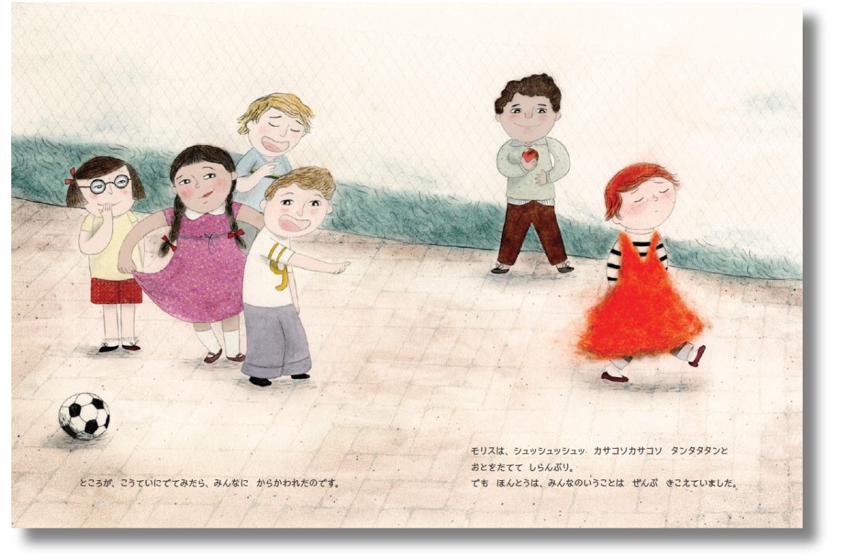 素敵なドレスを着たまま外にでると、モリスくんはみんなにからかわれてしまいます。モリスくんにとっては、傷つく言葉もあります。みんなとちがう「すき」をもつからこそ膨らむ、モリスくんの不安。一体どうやって、モリスくんはそれらを乗り越えるのでしょう……?