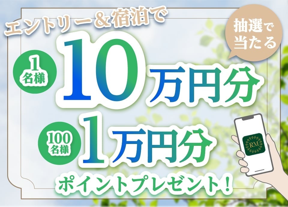 また、「ご宿泊Wチャンスキャンペーン」では、エントリーのうえ4月25日(金)チェックインから5月7日(水)チェックアウトまでの間に、ホテルにご宿泊いただいた方の中から抽選で1名様に10万円分、さらに、外れた方の中から100名様に1万円分のポイントをプレゼントします。