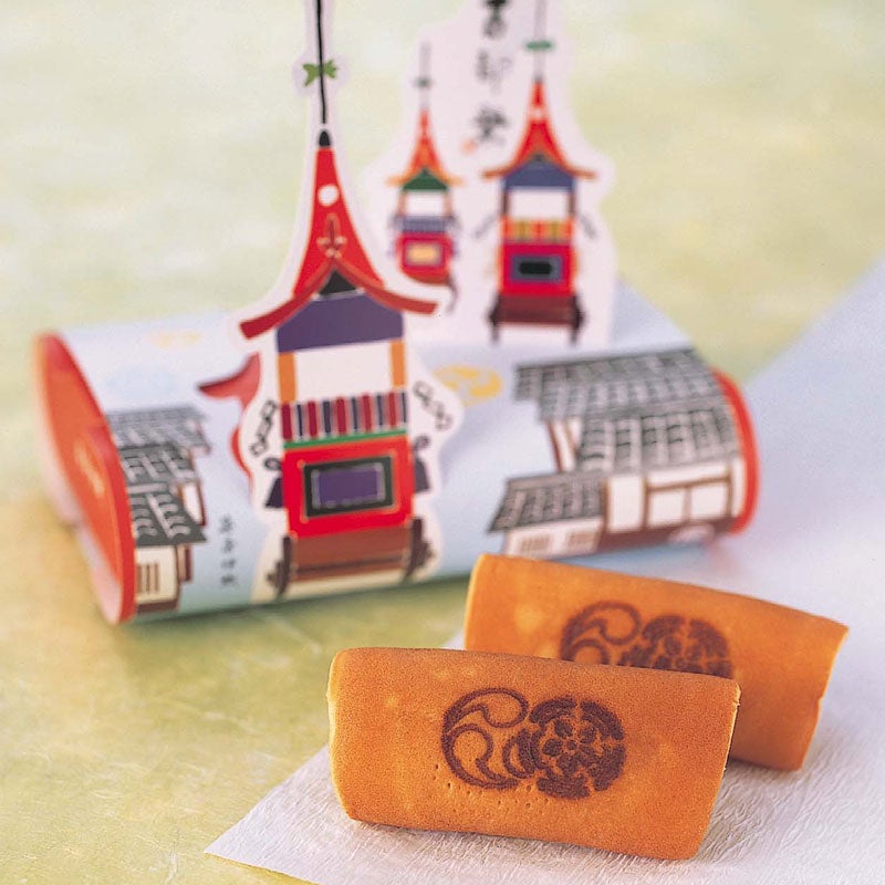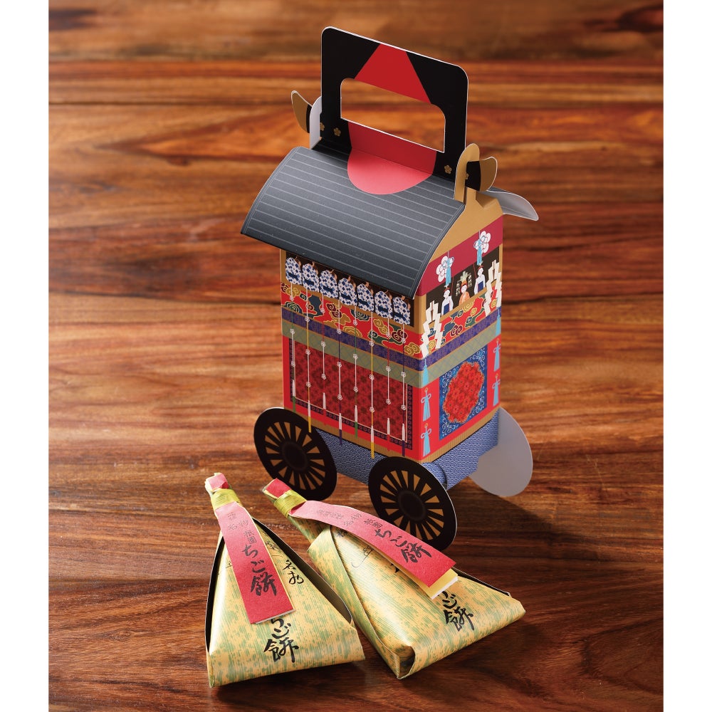 甘く炊いた白味噌をしっとり弾力のある求肥で包み氷餅をまぶした餅菓子です。期間限定で愛らしい鉾ケース入りをご用意。