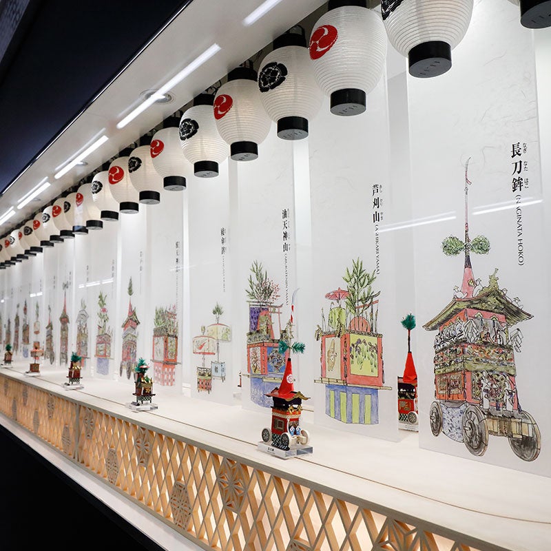 かわいらしいミニチュアサイズの山鉾34基が、ウインドウの中をゆっくりと巡行する姿をお楽しみいただけます。