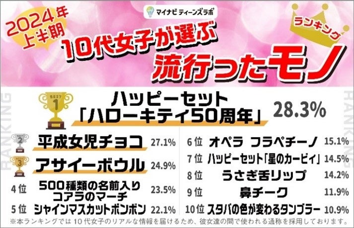 <マイナビティーンズラボ「2024年上半期10代女子が選ぶトレンドランキング」概要>