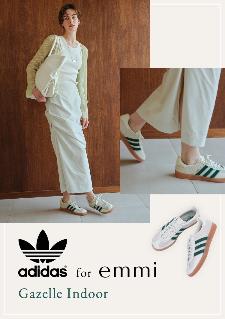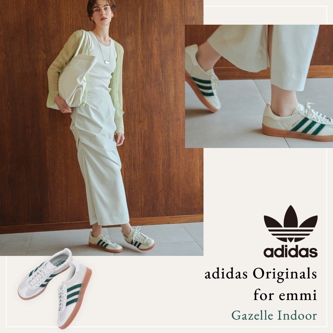 【adidas Originals for emmi】定番の人気モデルGazelle Indoorを別注!素材にもこだわりクラシカルでクリーンな一足が誕生。〈4月20日(木)発売〉