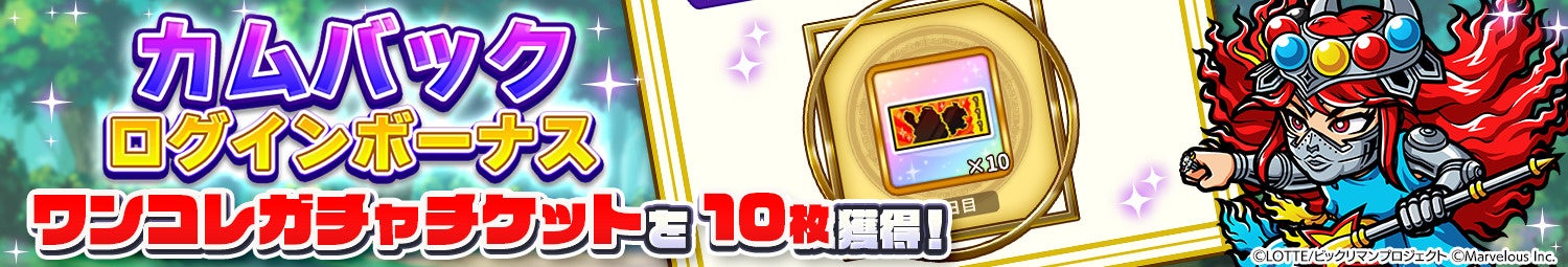 期間中にカムバックすると、「ワンコレガチャチケット」を10枚獲得できます。