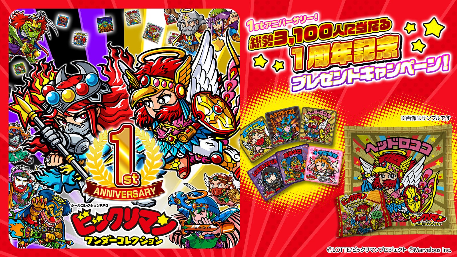 シールコレクションRPG『ビックリマン・ワンダーコレクション』:ワンコレ1周年キャンペーン!ついに「ヘッドロココ」登場!「無料100連キャンペーン」を開催!聖魔大戦編 第17章「起死回生の光輝」開催!