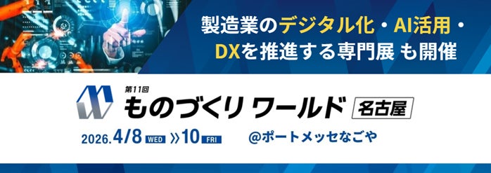 RX Japan合同会社(本社:東京都中央区、代表執行役員社長:田中岳志)は、2026年4月8日(水) - 10日(金)の3日間、ポートメッセなごやにて、中部最大級の製造業向け展示会『第11回 ものづくり ワールド [名古屋]』を開催します。