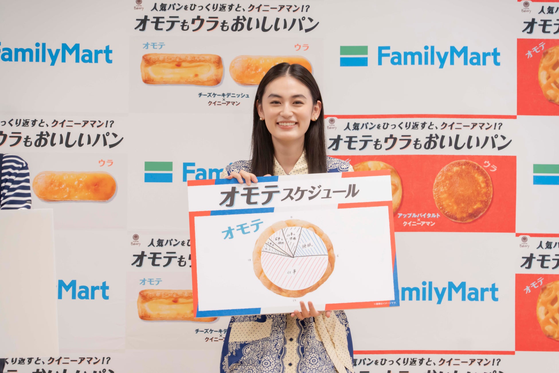 「オモテもウラもおいしいパン」にちなんで吉田さん、八木さんの「オモテ」と「ウラ」にまつわるエピソードをお伺いしました。八木さんには「オモテ」の仕事の日、吉田さんには「ウラ」のプライベートの日の1日の過ごし方についてフリップに記入いただき披露しました。八木さんはドラマの撮影スケジュールを公開し、「ドラマの撮影中は朝から夜までお仕事の時が多いんですが、お家に帰った後はすぐに動き出すのが苦手なので、ちょっとゆっくりする時間を作っています笑。」とエピソードをお話いただきました、「オモテもウラもおいしいパン」を食べるとしたらどのタイミングですか?とお伺いすると「お仕事中はとてもエネルギーを使って甘いものを食べたくなるので、動くシーンの撮影などの合間にパンを食べられたら嬉しいです!」と今回の「オモテもウラもおいしいパン」ならではの楽しみ方をコメントいただきました。吉田さんの“ウラ”の過ごし方はお子さんとのおうち時間にまつわるお話を披露。「朝の7時から10時の間に娘二人を送り出すまでの時間がいつも大戦争で、一日のエネルギ―をすべてここで使い果たすといっても過言ではないです笑。」とご家族で過ごされる時間についてお話いただき、「オモテもウラもおいしいパン」を食べたいタイミングについてお伺いすると、「ミルクをあげた後などホッとする瞬間のすべてで『オモテもウラもおいしいパン』を食べたいです!」と絶賛子育て中ならではの過ごし方をお話しいただきました。