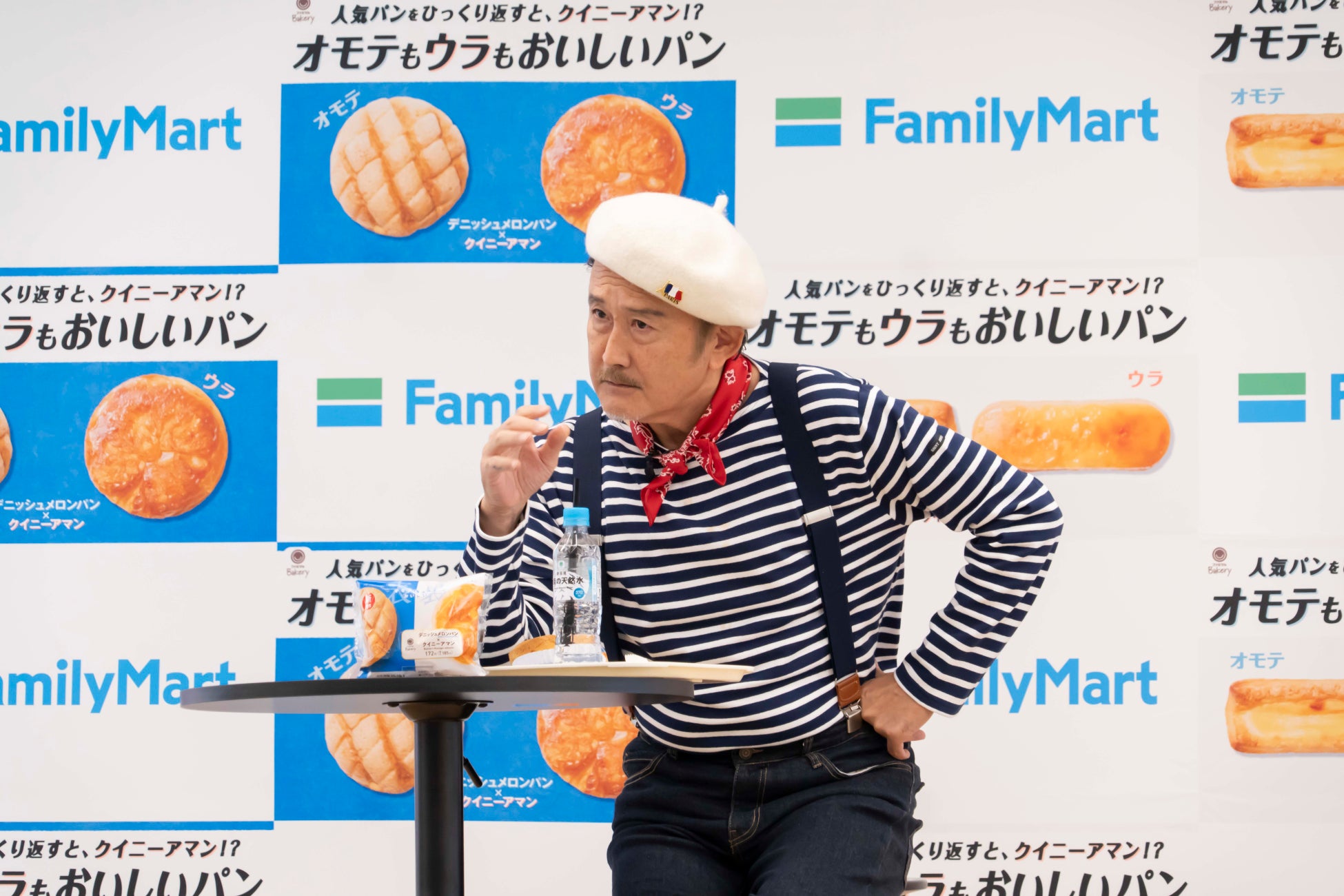 発表会には、10月7日(火)より放映開始する新TVCM「オモテもウラもおいしいパン誕生」篇に出演する吉田鋼太郎さん、八木莉可子さんが登壇し、フランスをイメージした華やかな衣装で登場。MCからCM撮影でのエピソードを聞かれると、吉田さんは「フランスの風が吹いていた撮影でした!『“アマ~ン”でうま~ン』といったセリフもフランス語を意識しました。」と語り、八木さんは「クイニーアマンのあめ部分が角度によって光ってしまい、吉田さんが色々試行錯誤しながら撮影を行ったのが印象的でした。」とお答えいただき、撮影時の和やかな雰囲気をお話しいただきました。