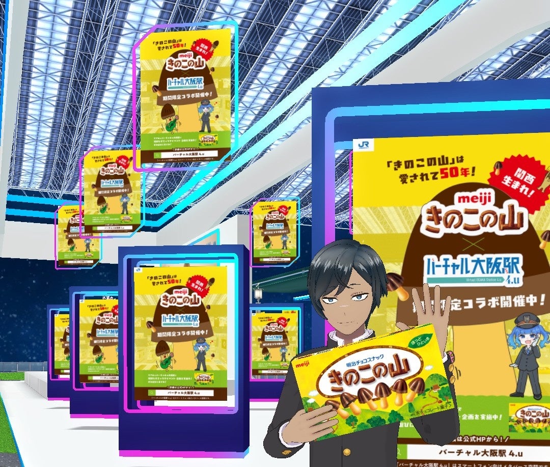 株式会社 明治とバーチャル大阪駅 4.uがコラボ! 「きのこの山」発売満50年を記念し、 バーチャルとリアルの大阪駅でイベントを開催!