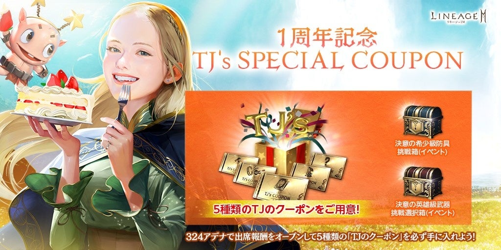 期間中、毎日100,000アデナや5種のTJのクーポンなどを獲得することができます。
