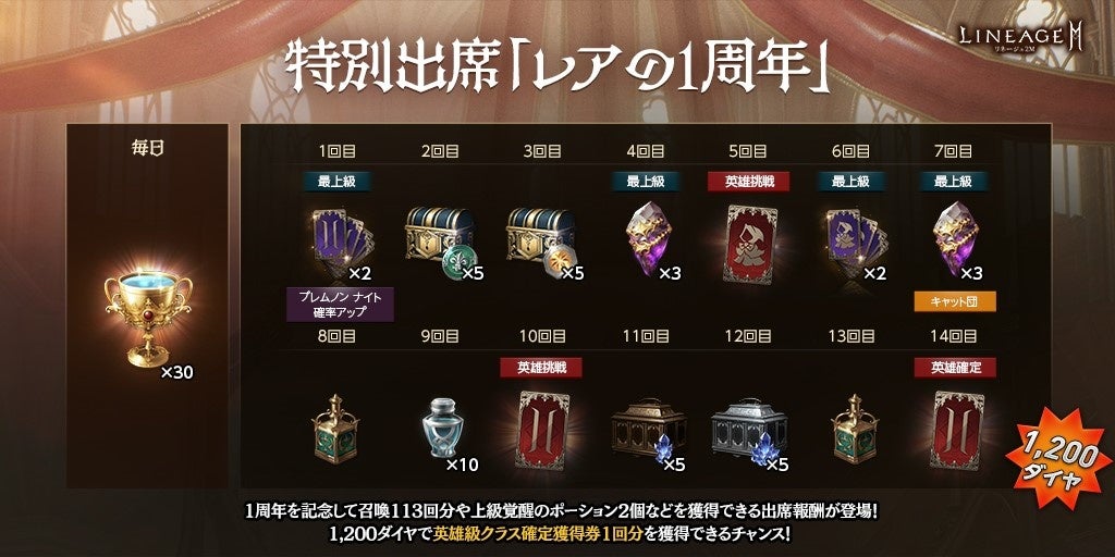 『リネージュ2M』の1周年を記念してイベントを開催します。