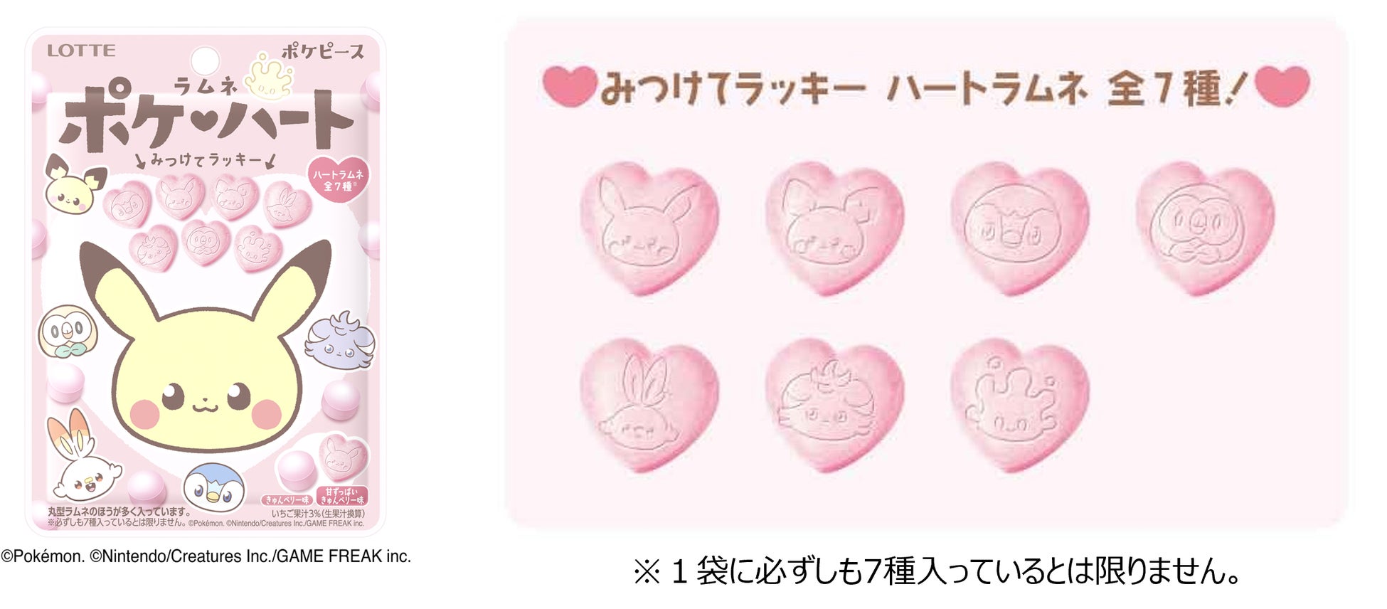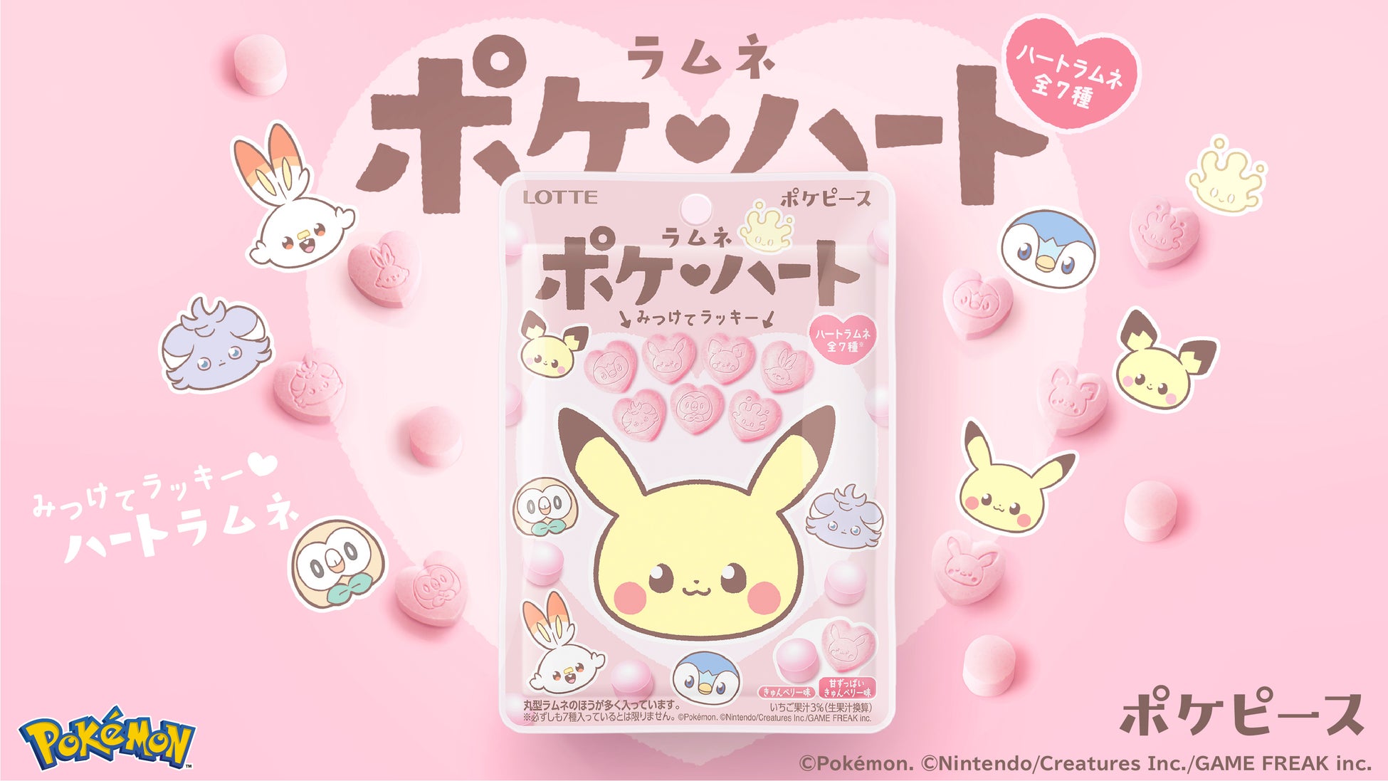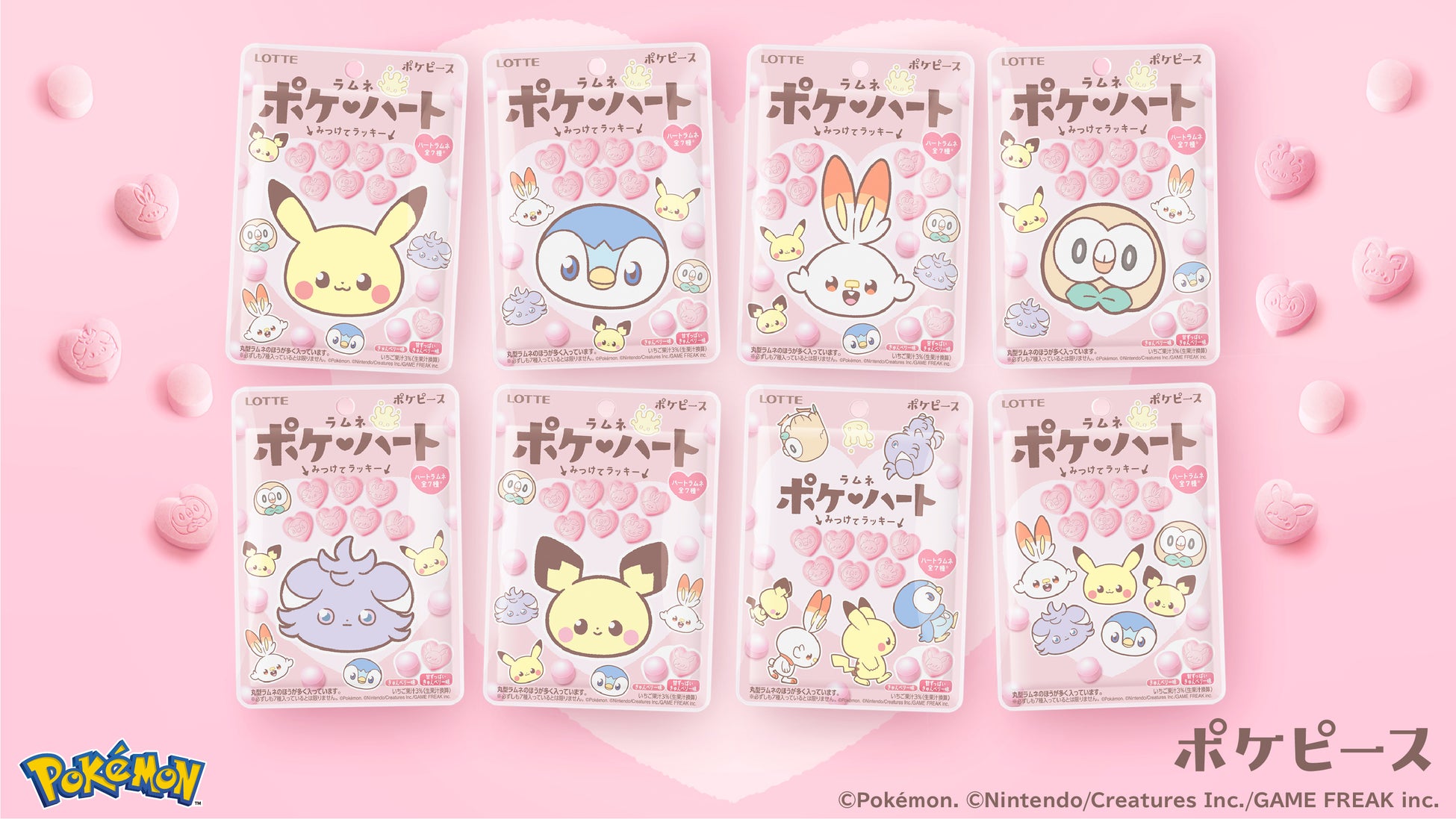 株式会社ロッテは3月7日(火)に、ポケピースのポケモンたちがデザインされた「ポケハートラムネ」を発売いたします。冒険するよりおうちが好き。そんな“ピース”なポケモンたちのくらしにフォーカスした、ほっこりかわいいNEWデザイン「ポケピース」のお菓子から第2弾!思わず集めたくなる全8種のパッケージと、みつけたらラッキーな、ポケピースのなかまたちが描かれたハート型のラムネで、探してワクワク!食べておいしい!をぜひお楽しみください。