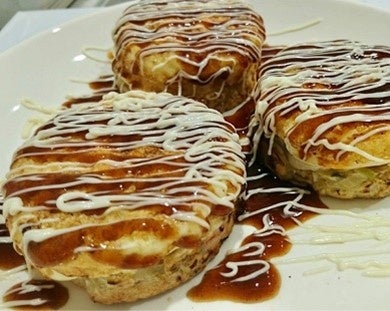 出汁のきいた生地にキャベツをたっぷり入れて、具材をのせたコンパクトなお好み焼です。
