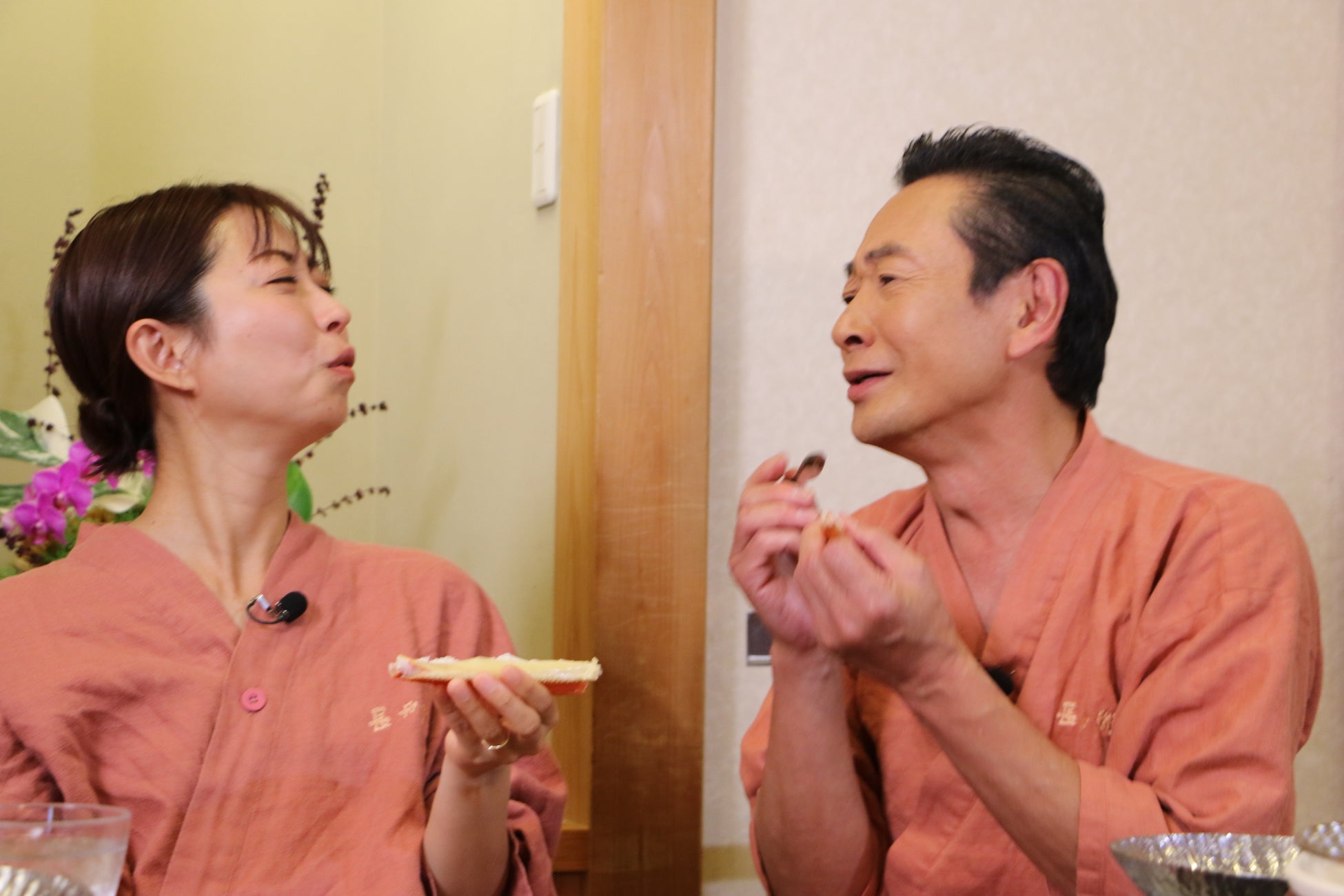 今回の夕食は敦賀さざなみリゾート【ちょうべい】で越前ガニのフルコースです。もはやプロのような三田村のカニさばきも必見!そして謎のファミリーコント⁈
