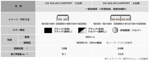 「DA SOLAR CARPORT」発売(ニュースリリース)
