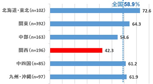 「お好み焼きに白米はありか?なしか?」など、インターネット上でたびたび紛糾している「〇〇に白米はありか?」議論。この「お好み焼き」については、全国では約6割の人が「なし」の多数派だったものの、関西では「なし」が約4割と少数派に。とはいえ、「関西ではお好み焼きと白米を食べるのが当たり前らしい」と思っていた別地方の方からすると、関西でも「お好み焼きに白米」は「なし」が約4割もいるというのは驚きかもしれません。