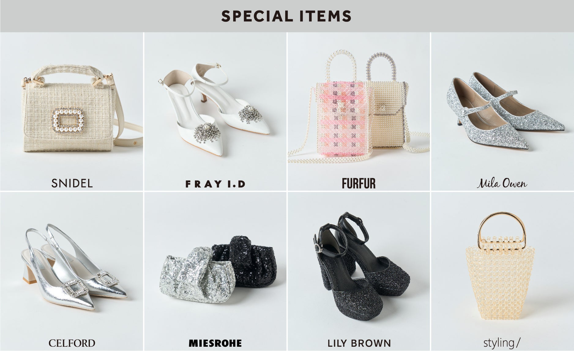 煌びやかなプレミアムドレスに加え、華やかな装いにふさわしい、「バッグ」「シューズ」もご用意いたします。