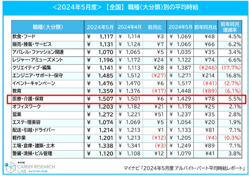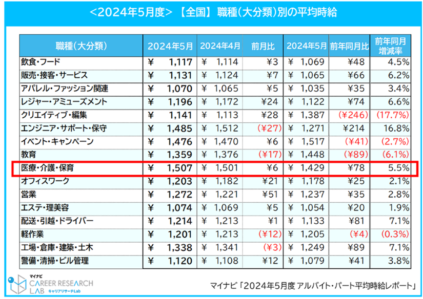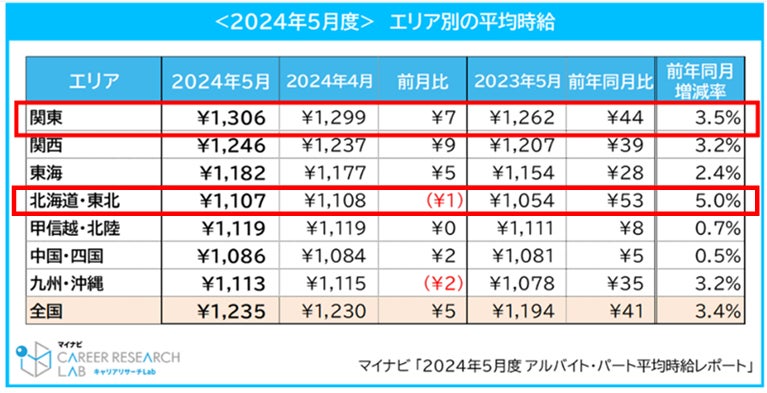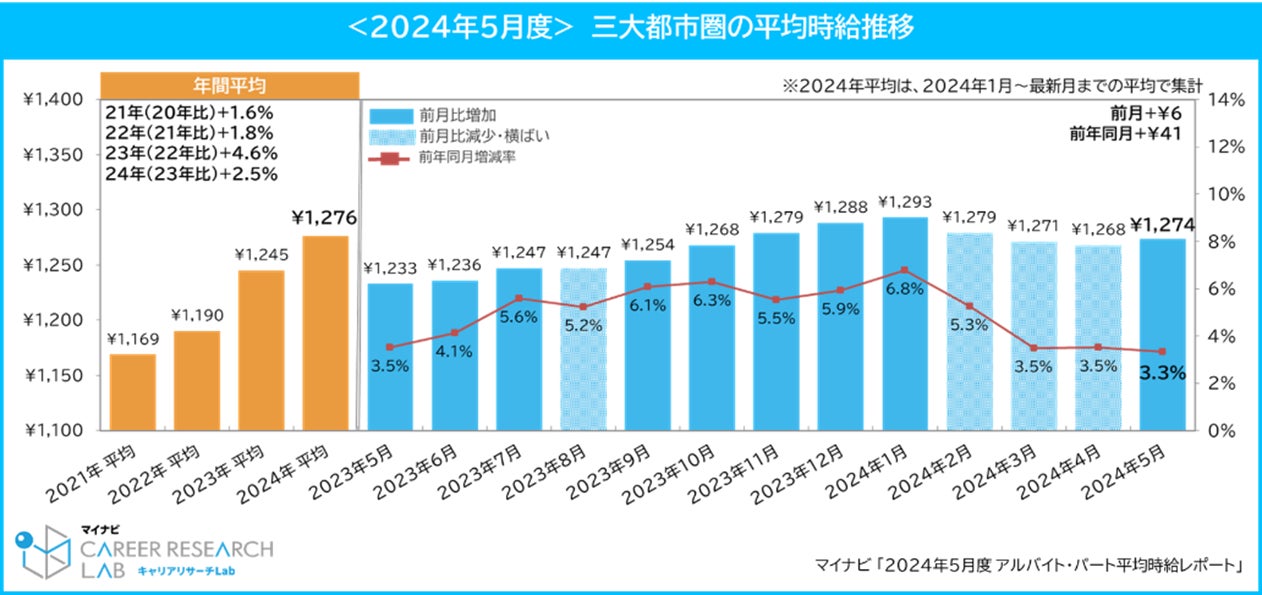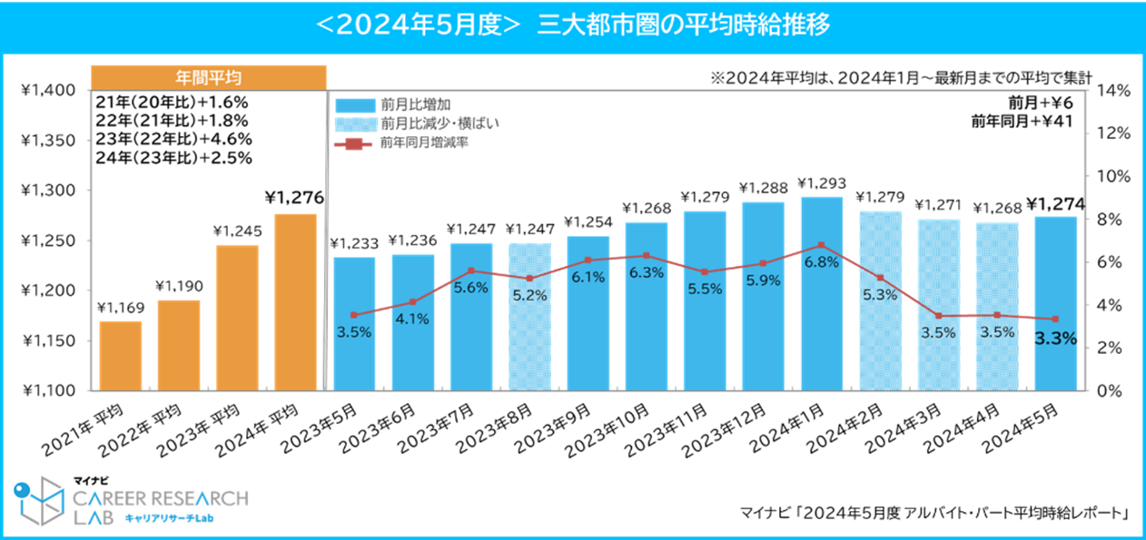 マイナビ、「2024年5月度アルバイト・パート平均時給レポート」を発表