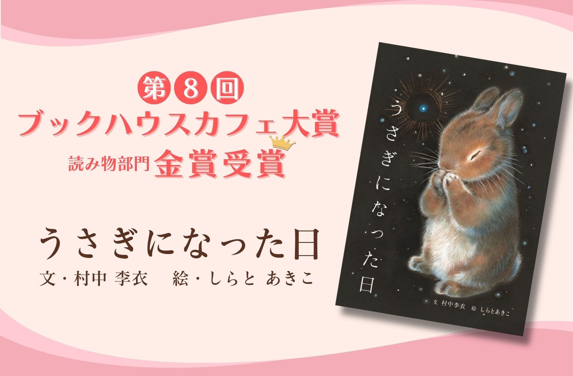 子どもの本専門店ブックハウスカフェ(東京都千代田区)のスタッフによって選考される「ブックハウスカフェ大賞」の読み物部門金賞に、世界文化社刊・『うさぎになった日』(文・村中 李衣 / 絵・しらと あきこ)が選ばれました。ありがとうございます!