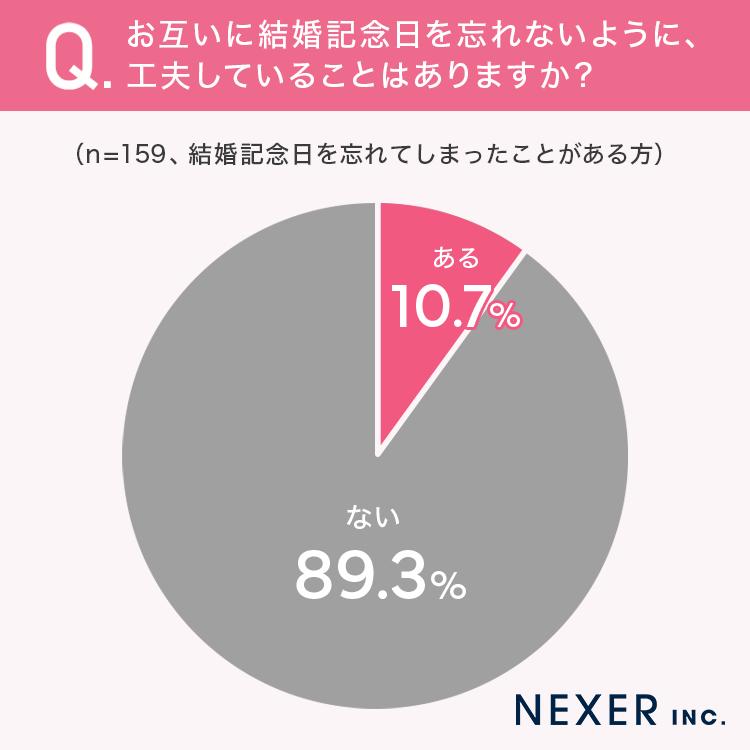 ■10.7%が、お互いに結婚記念日を忘れないように「工夫していることがある」と回答