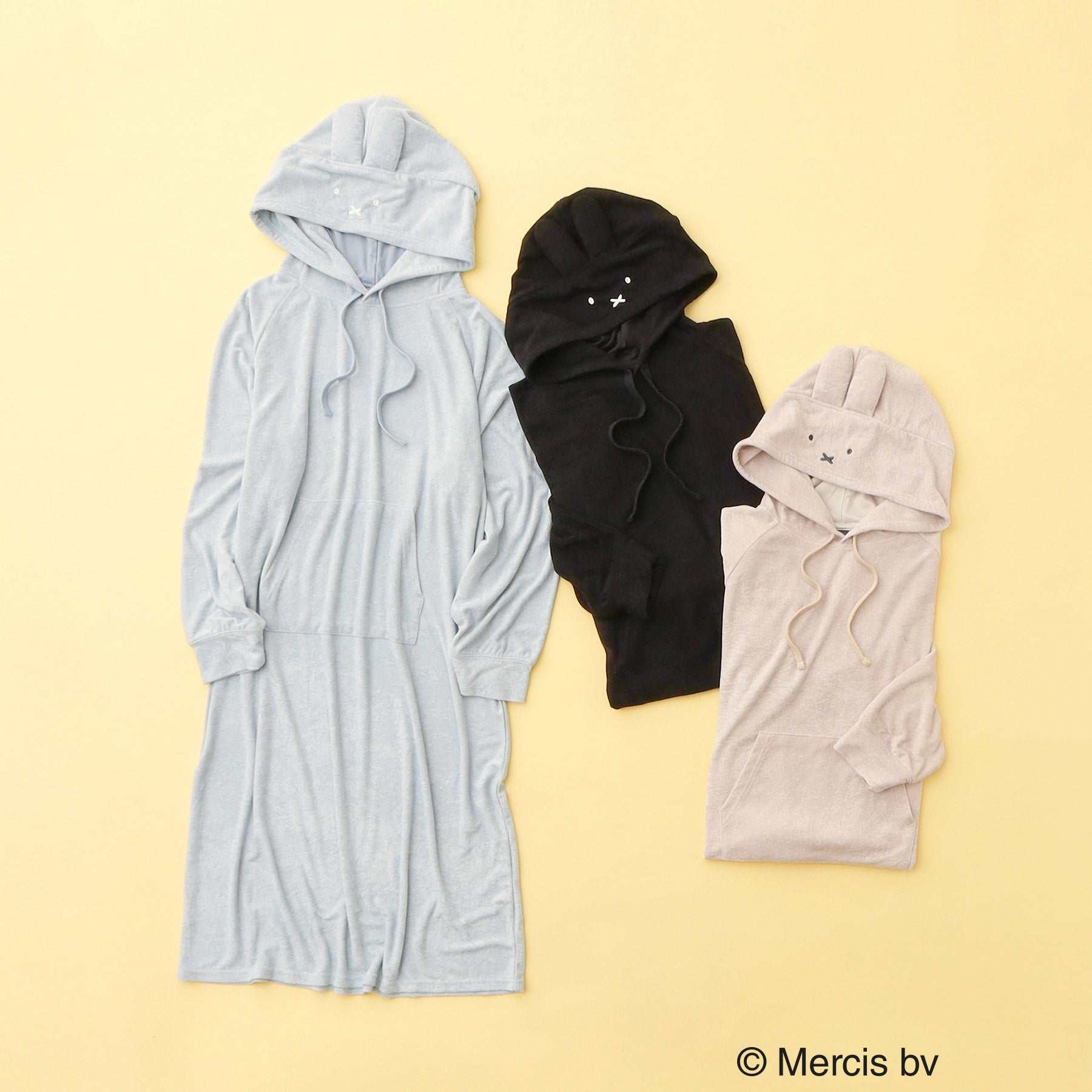 フード部分にミッフィーのお耳とお顔をデザインした、かわいらしいルームワンピース。