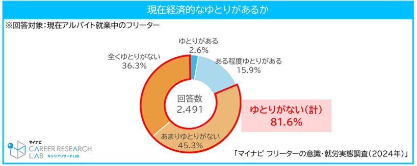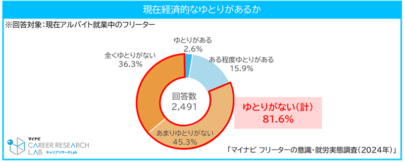 現在アルバイト就業中のフリーターの8割は経済的にゆとりがないと感じており、生活のためにアルバイトをしている人が多い現状が明らかになりました。