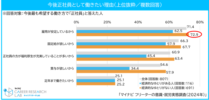 正社員で働きたい最多理由は「雇用が安定しているから」