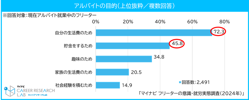 アルバイトの目的は「自分の生活費のため」「貯金をするため」など金銭面が上位に